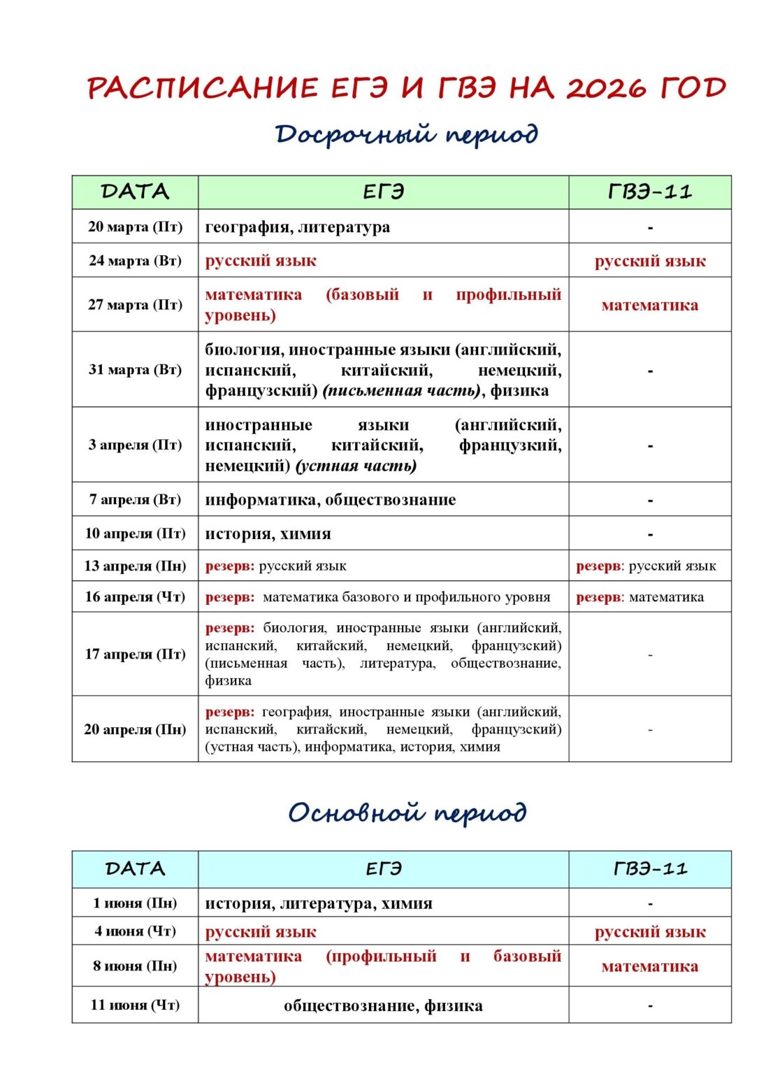 Напоминаем, что проведение ГИА-11 в 2026 году запланировано в следующие сроки: досрочный период с 20 марта по 20 апреля, основной период состоится с 1 июня по 9 июля, дополнительный – с 4 по 25 сентября.