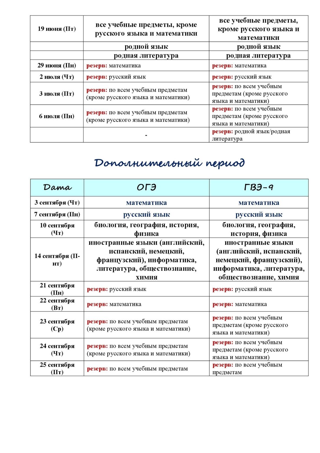 Участники экзаменов, у которых совпали сроки проведения экзаменов по отдельным учебным предметам, могут сдать их в резервные дни.