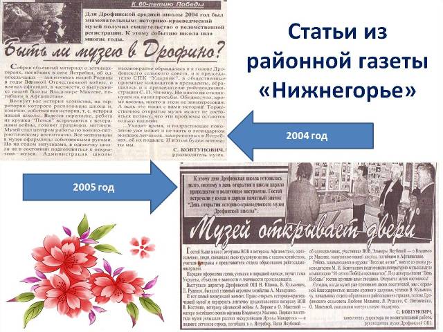 Школьный историко-краеведческий музей в МБОУ «Дрофинская СОШ» был открыт 09 мая 2005 года.