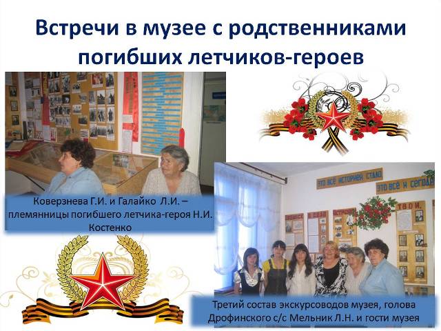 В экспозиции музея представлены материалы, освещающие участие жителей сел в Великой Отечественной войне. Экспонаты включают фотографии, письма с фронта, личные вещи и документы, рассказывающие о героизме и самоотверженности советских солдат. Музей ведет активную научно-исследовательскую и просветительскую деятельность, организуя тематические выставки, лекции, экскурсии и краеведческие конференции. На базе музея реализуются образовательные программы для школьников, направленные на изучение истории родного края, формирование уважительного отношения к культурному наследию и воспитание патриотизма.