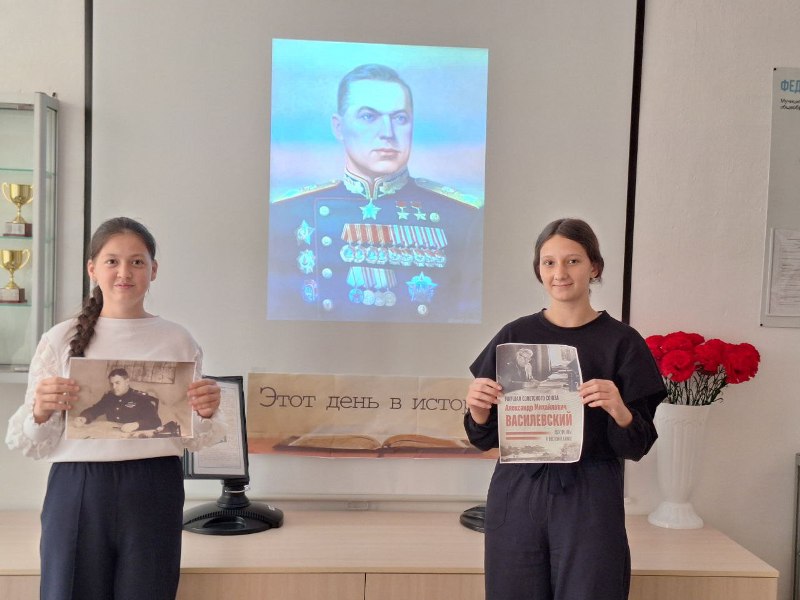 Ученики 9, 11 классов под руководством Ленары Элемдаровны погрузились в героическую биографию и военный путь этого великого человека, узнали о его вкладе в разработку и проведение ключевых операций Великой Отечественной войны, о его стратегическом гении, который помог переломить ход войны и приблизить долгожданную Победу.