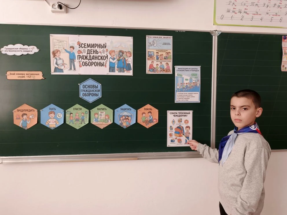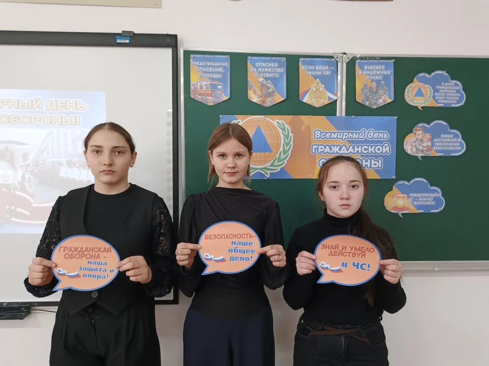 Классные руководители рассказали ребятам об истории создания и развитии системы гражданской обороны, познакомили со средствами и способами защиты населения в случае возникновения опасных ситуаций. Обучающиеся узнали о том, как правильно действовать в случае возникновения каких-либо угроз, напомнили правила безопасного поведения в условиях чрезвычайной ситуации и разъяснили, какие действия нужно принимать, если услышали сигнал оповещения «Внимание всем!», повторили правила пожарной безопасности.